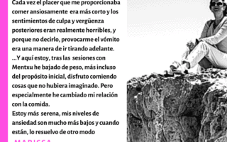 Hoy os traigo el testimonio de una de una mujer valiente: Mercè. Me encantó saber lo bien que le está funcionando lo que trabajamos en las sesiones de alimentación consciente. Su testimonio me potencia para seguir motivando a las personas a mejorar su salud. Me siento muy agradecida `por su apoyo y por tu apoyo. […]
